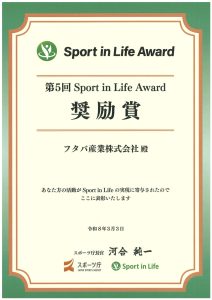 フタバ産業株式会社(本社:愛知県岡崎市、社長:魚住 吉博)は、このたびスポーツ庁より「Sport in Life アワード」において、奨励賞を受賞しました。