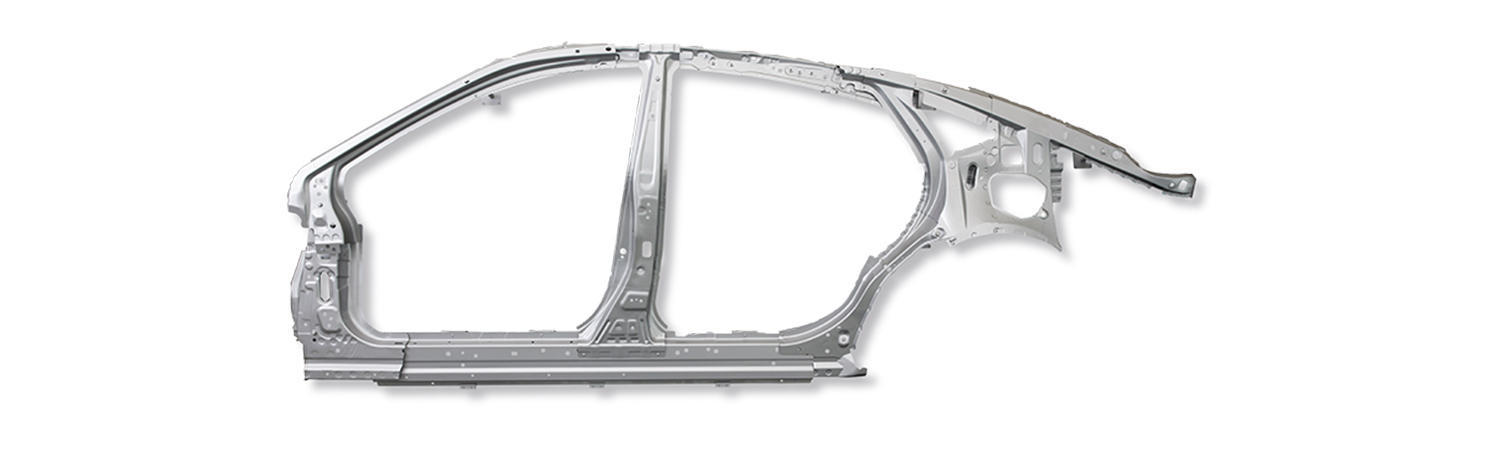- サスペンションアーム類、ステアリングラックケース、エンジンマウント等の取り付け点をまとめ、サスペンション全体をモジュール化してボデーに結合する部品です。衝突時には、さまざまな方向から大きな衝撃を受け止めるため、強度、剛性を高く保っています。